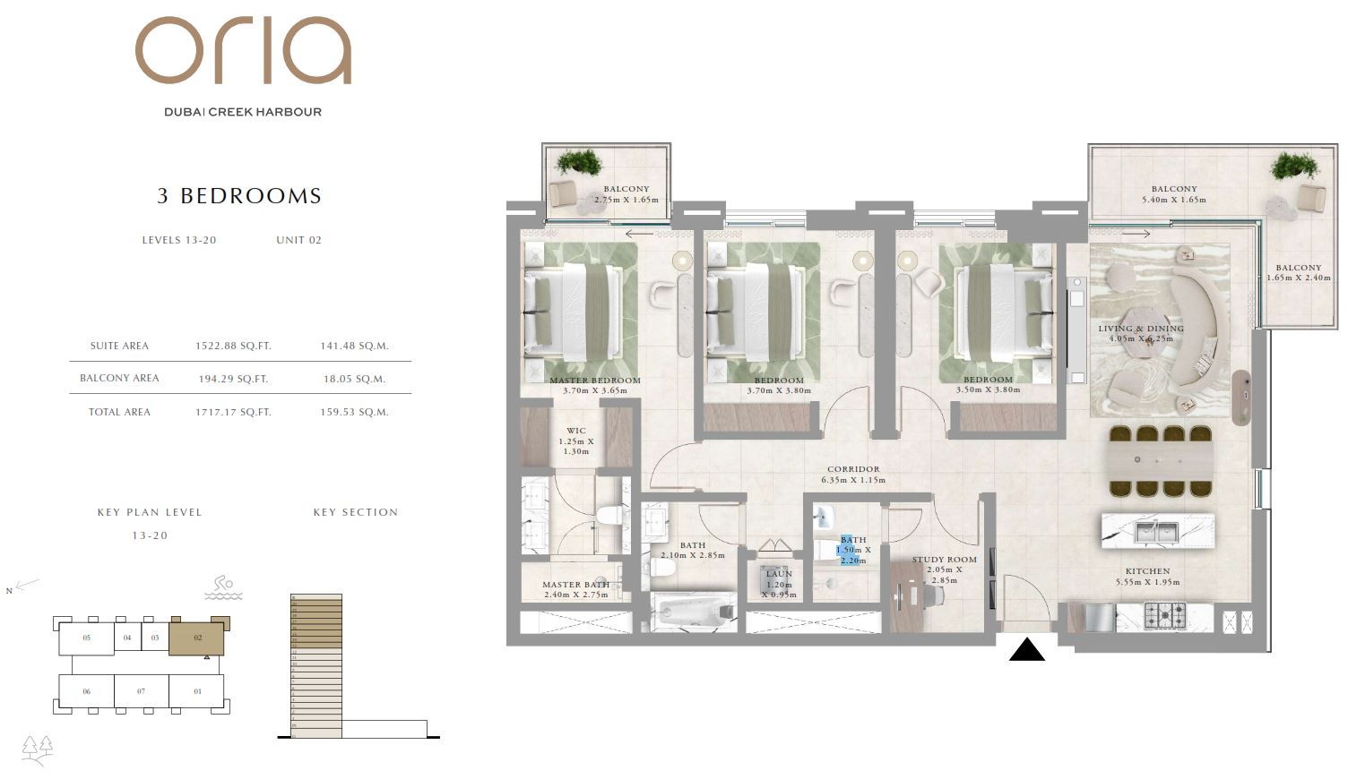 Starting from AED 1.7 million onwards for a 1-bedroom unit, Emaar Creek Harbour Oria promises exceptional value for potential investors. This off-plan development allows buyers to secure their desired unit with just a 10% booking amount, making it accessible to a wide range of investors. Situated strategically, Dubai Creek Harbour offers seamless connectivity to key areas like Downtown, Business Bay, and Palm Jumeirah, enhancing its appeal as a coveted address for property buyers.