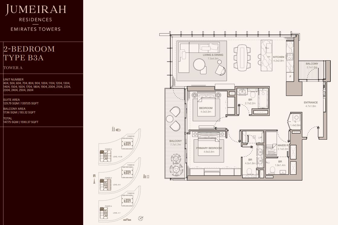 Jumeirah Residences Emirates Towers is a newly launched luxury residential property by Meraas, located at Sheikh Zayed Road near DIFC and Emirates Towers, Dubai. The project offers spacious 1 to 4-bedroom apartments with sizes ranging 889.74 sq.ft to 3,467.27 sq.ft. Saleable area of 2 bedroom residences starts at 142.29 SQM / 1,531.60 SQFT and sales offer pricing starts at AED- 4.78 Million onwards. Enjoy breathtaking views of the Museum of the Future and Burj Khalifa, while living in a premium location in the heart of the city. The development includes two residential towers, with the first tower rising 57 floors. Starting price for 1-bedroom apartments begins at AED 3.51 million. Buy a luxury property in Dubai with just a 20% down payment, Meraas Dubai Properties offers attractive pricing and flexible 60/40 payment plans.
