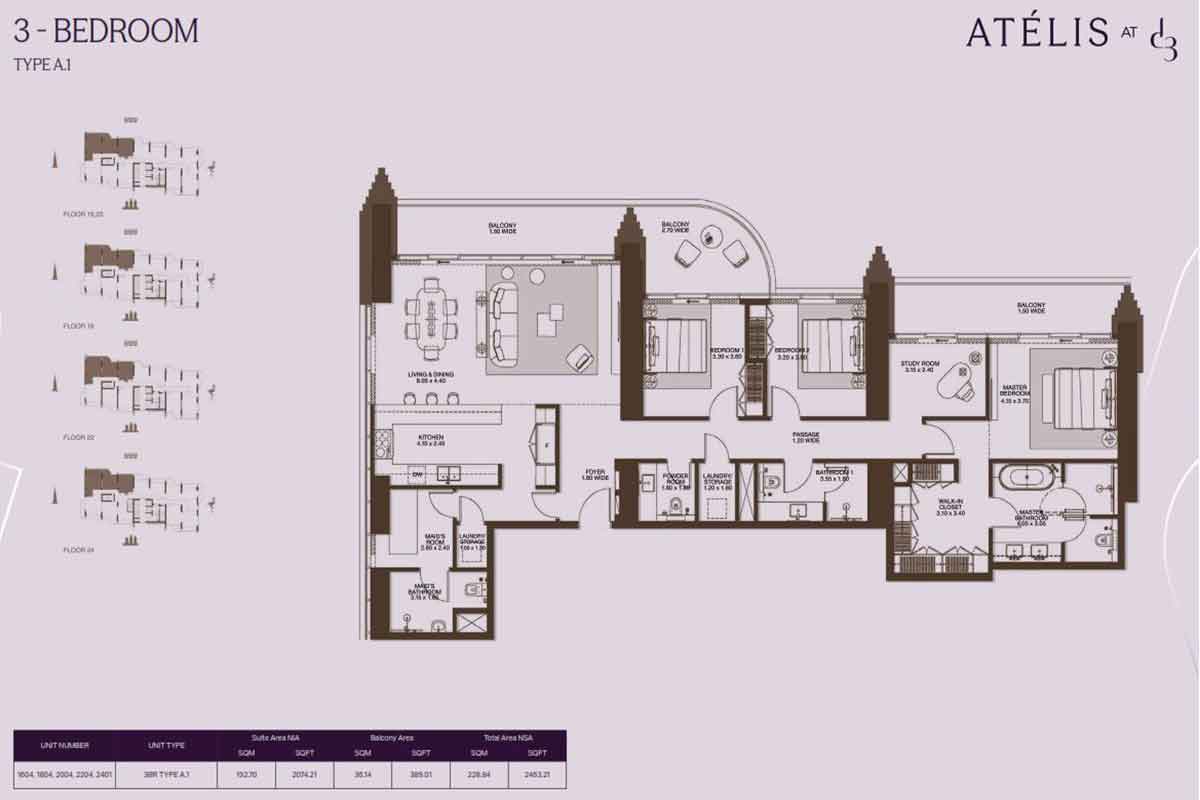 - AED 7.4 million for 3 & 4-bedroom (2,463–3,361 sq. ft.)