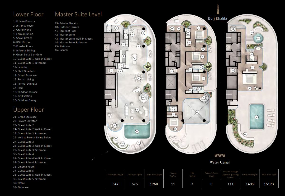 The project comprises of 2 residential buildings, Rings by PMR offers 5-star amenities and à la carte services, providing the epitome of indulgence for those who appreciate a luxurious and comfortable lifestyle. The 7-bedroom apartment boasts a built-up area of 19,192 sq.ft, featuring expansive living and dining spaces. As an off-plan property, it is expected to be completed by Q4-2025.
